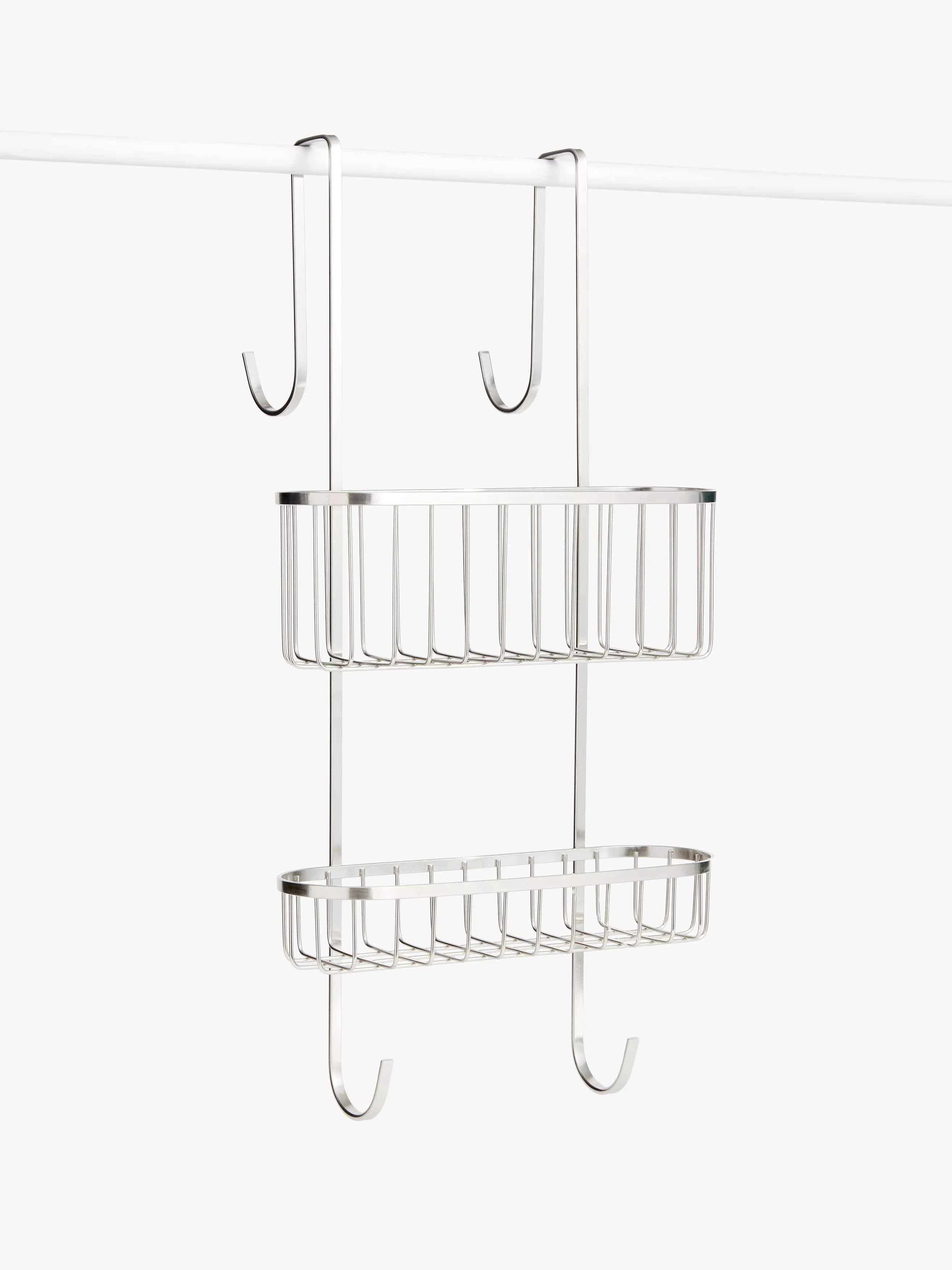Outre les deux paniers, il y a deux crochets en bas pour suspendre votre éponge de douche ou votre loofah.