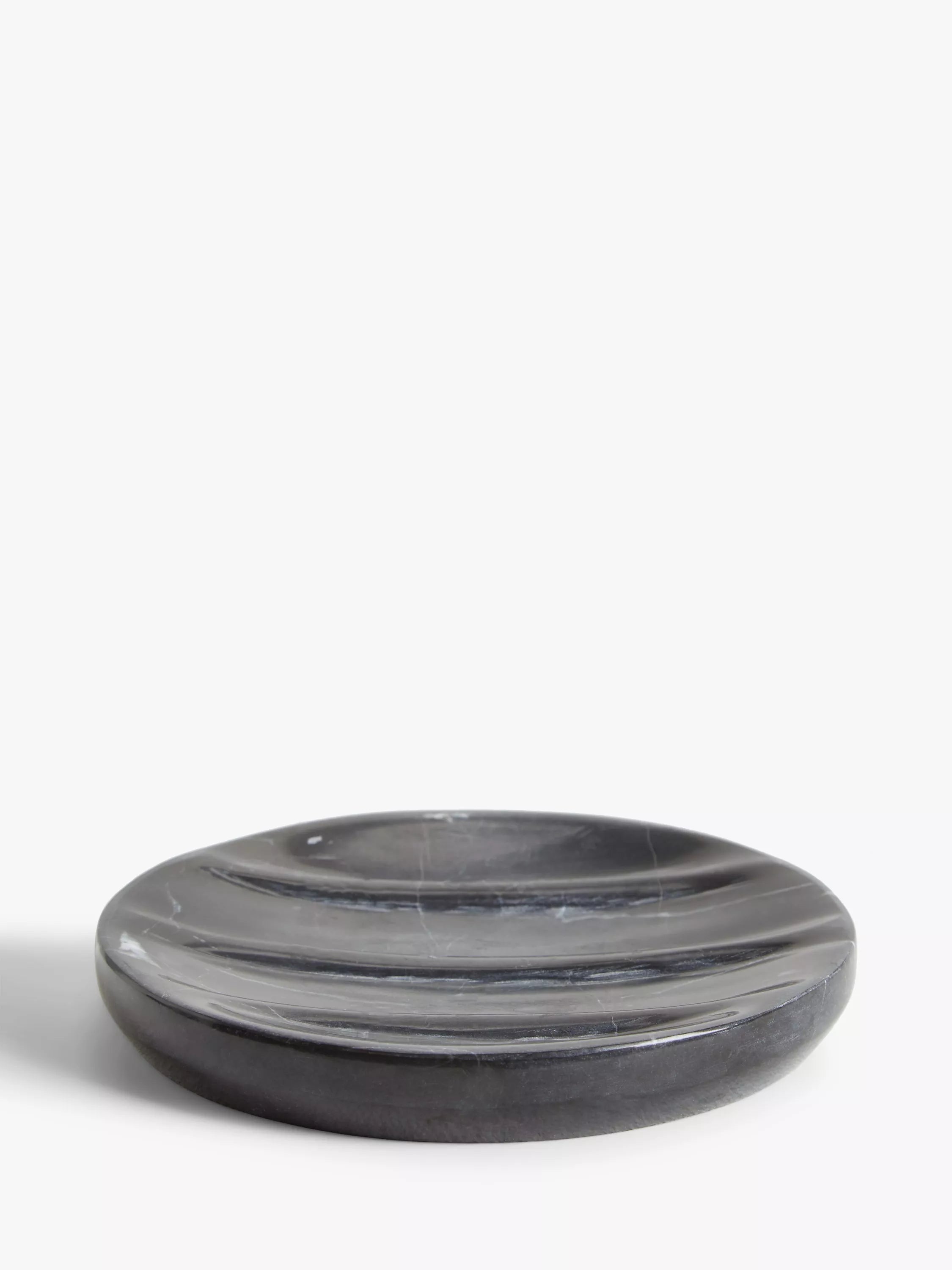 Nous avons modernisé notre plateau à accessoires en marbre en optant pour une teinte foncée plutôt que le blanc traditionnel. Le marbre noir présente un grain fin et compact, parcouru de veines blanches, lui conférant une allure sophistiquée. Chaque pièce étant fabriquée artisanalement, de légères variations de finition peuvent apparaître, certaines présentant un veinage plus prononcé que d'autres, ce qui contribue à la beauté et au caractère unique du produit.