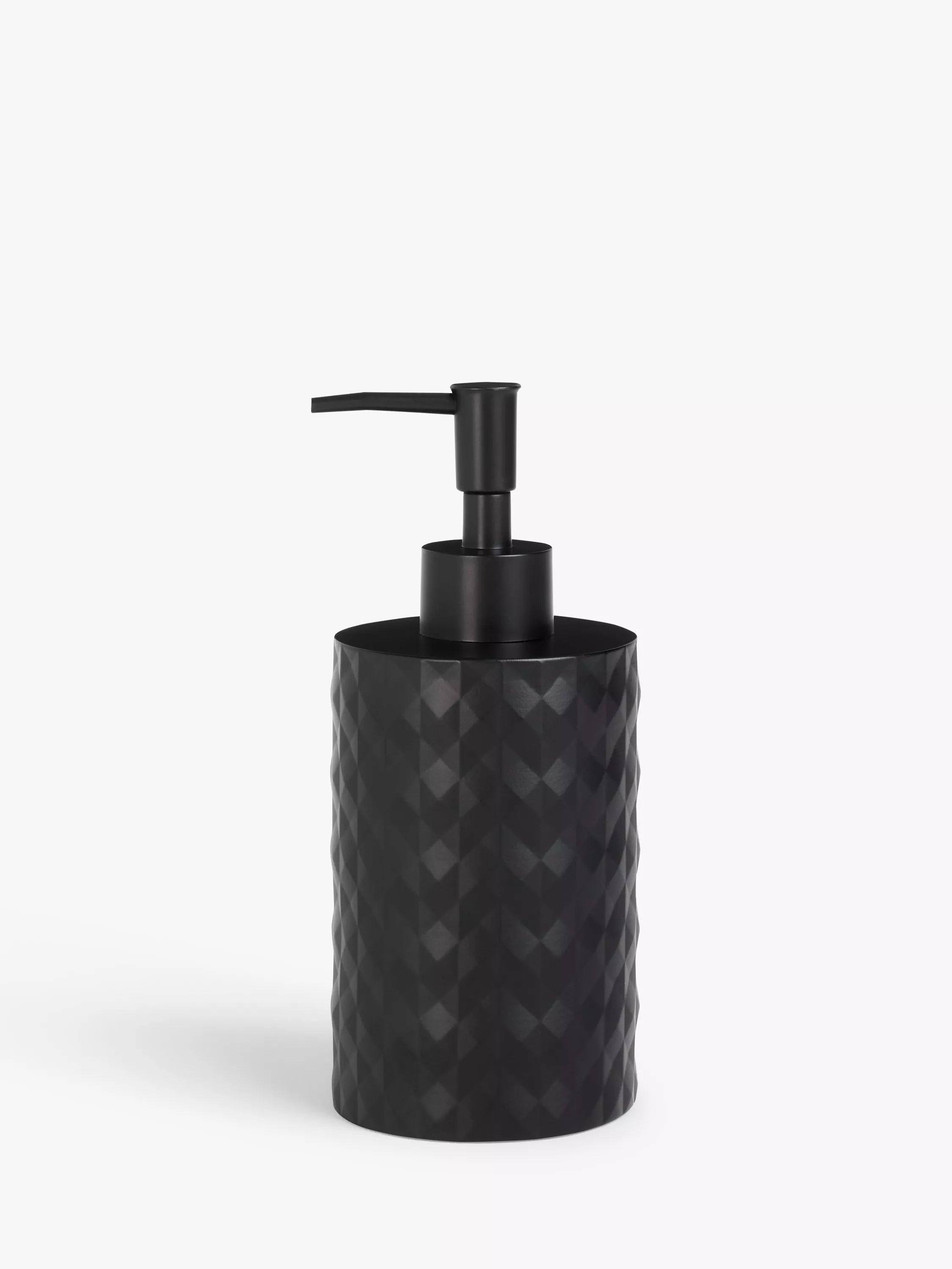 Apportez une touche d'élégance moderne à votre salle de bain avec ce distributeur de savon raffiné. Son design texturé en forme de diamant lui confère un éclat subtil, faisant de lui un accessoire sophistiqué pour toute la maison. Cet objet élégant est idéal pour ajouter une note de luxe à votre routine quotidienne.