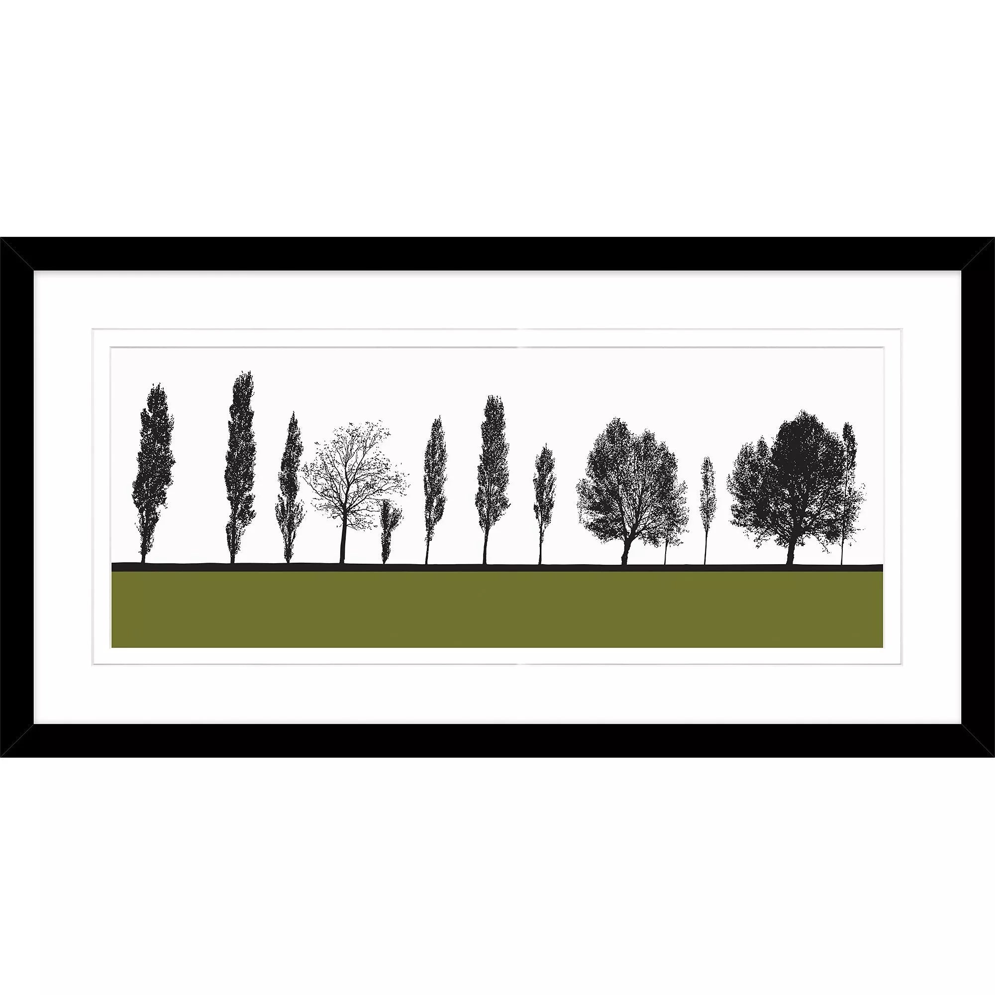 Avec sa composition arborée et sa large bande de vert éclatante, cette ravissante estampe est idéale pour créer une ambiance nature et nature dans votre intérieur. Cette œuvre attrayante de Jacky Al-Samarraie est une impression numérique présentée dans un cadre en bois noir.