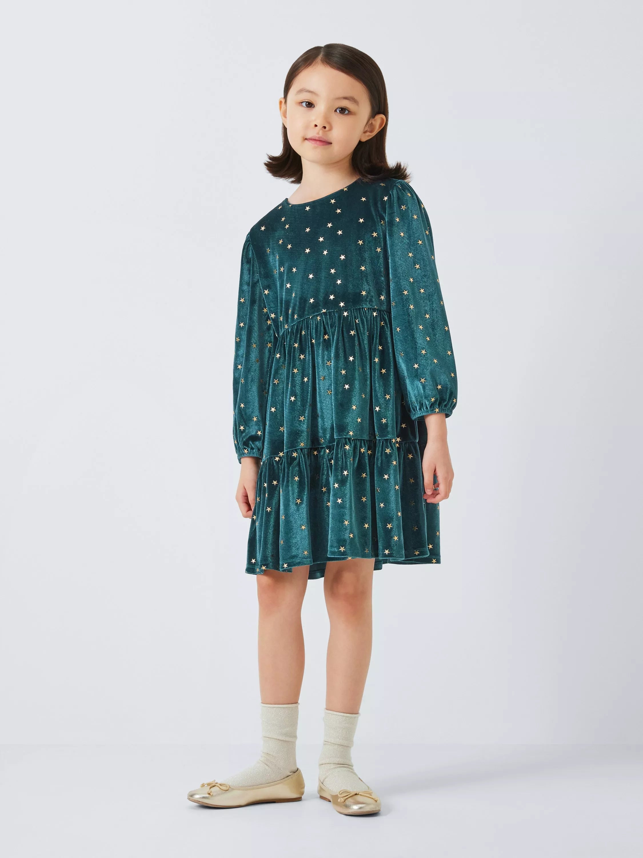 Une robe longue en velours à manches longues, ornée d'un imprimé d'étoiles dorées. Parfaite pour les fêtes d'hiver !