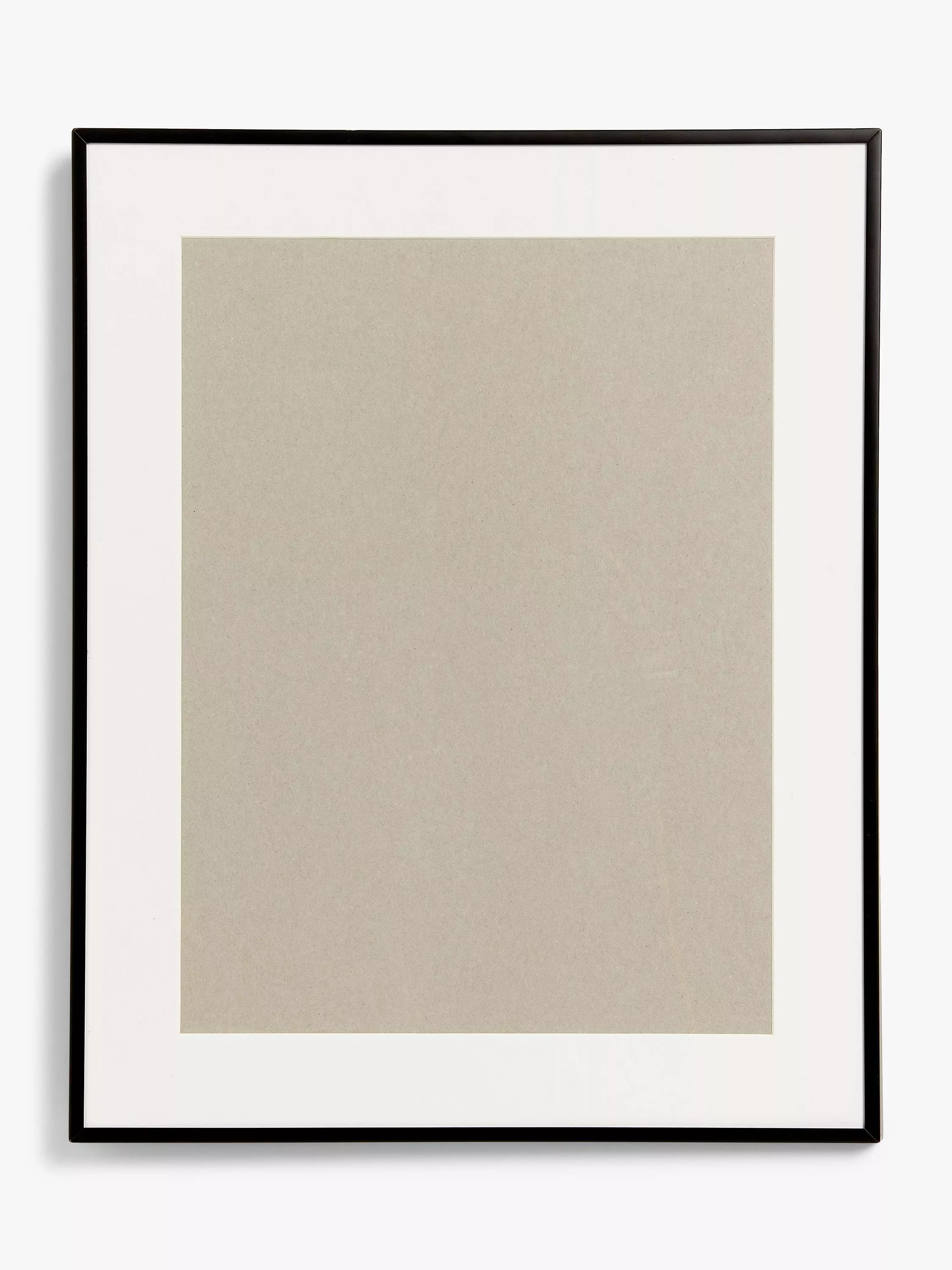 Cadre photo contemporain en métal fin à finition mate, avec vitre amovible. Sa conception soignée met en valeur l'image. Fixation murale verticale ou horizontale grâce aux fixations au dos.