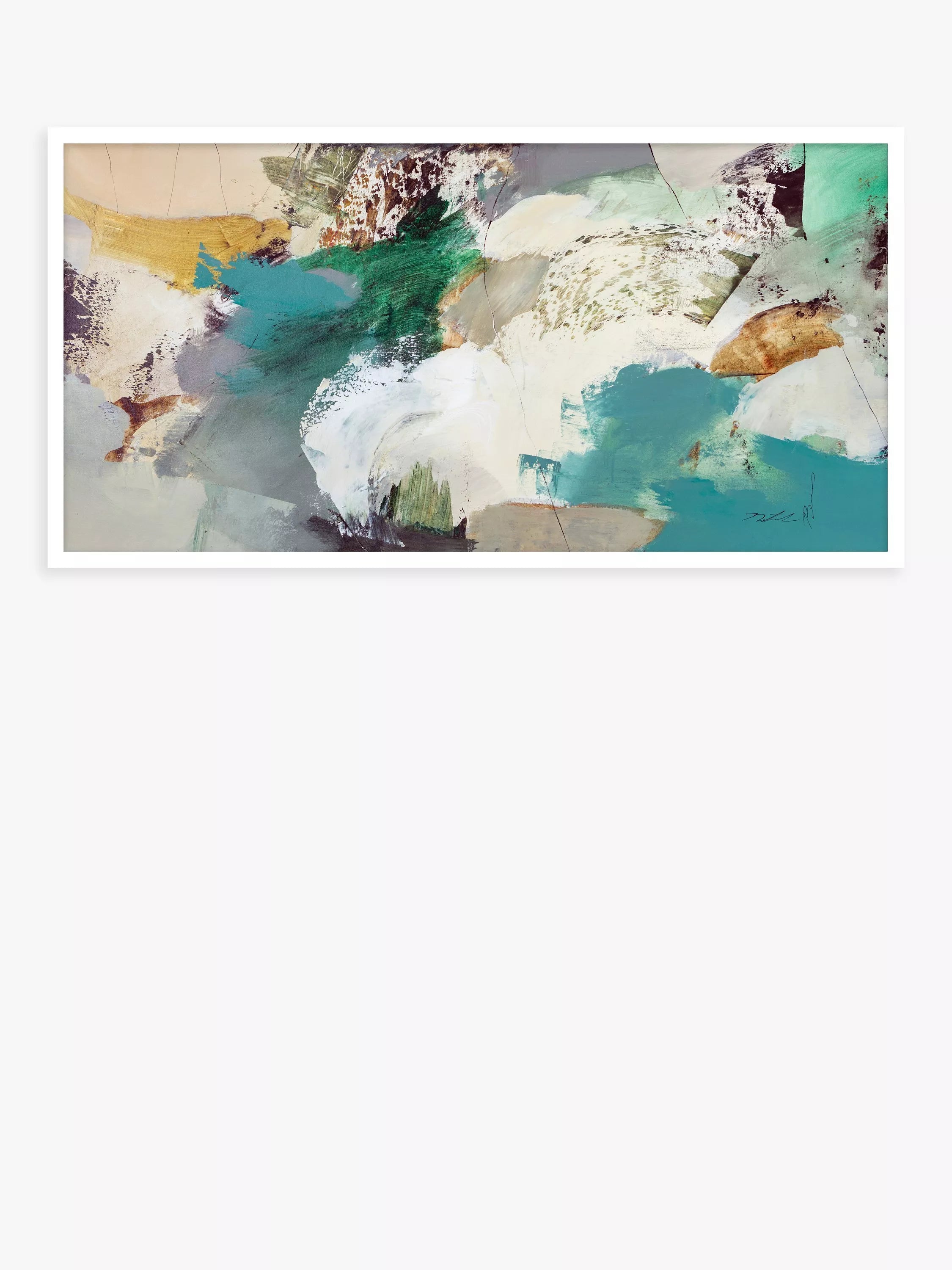 Audacieuse par ses couleurs, cette estampe abstraite, « Evergreen », de l'artiste Natasha Barnes, est non encadrée et finie avec un gel texturé appliqué à la main. Fabriquée au Royaume-Uni, elle est présentée dans un cadre caisse américaine, prête à être accrochée.