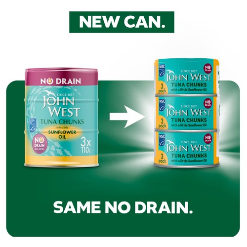 John West No Drain Tuna Chunks with a Little Sunflower Oil MSC 3x100g