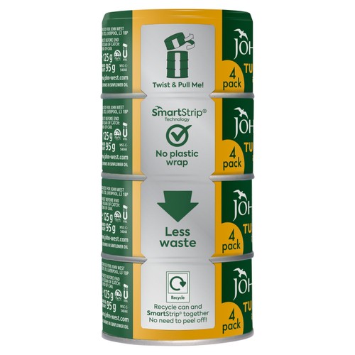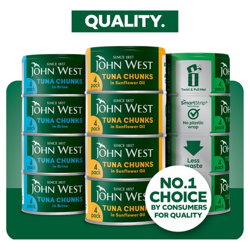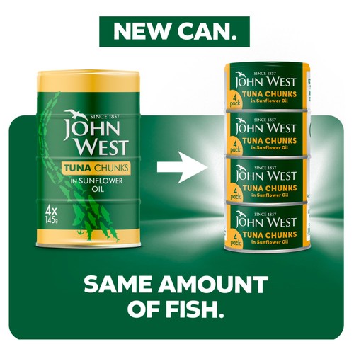 John West Tuna Chunks in Sunflower Oil 4x125g 102g drainedl