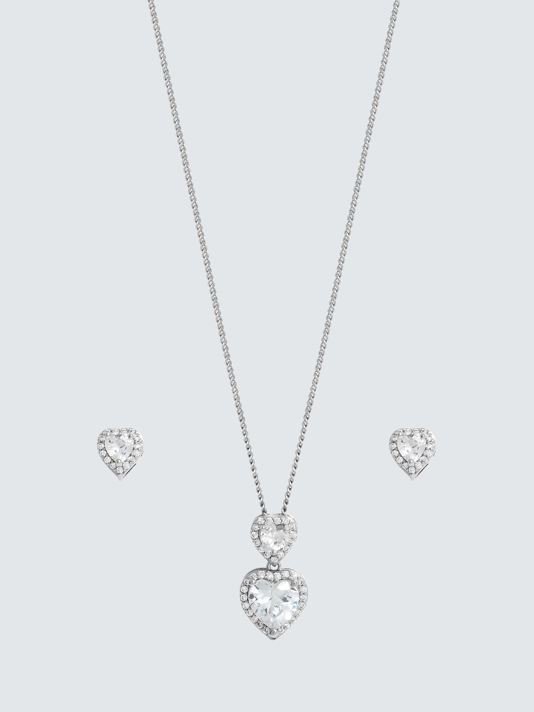 Jon Richard Sparkling Double Heart Boxed Jewellery Set Silver