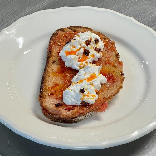 JULIENNE BRUNO Superstraccia is a Great Taste Award-winning plant-based cheese offering rich and creamy curds. This fresh cheese is naturally fermented and made locally in West London. It maintains versatility, tasting equally good when served cold or cooked in hot preparations.