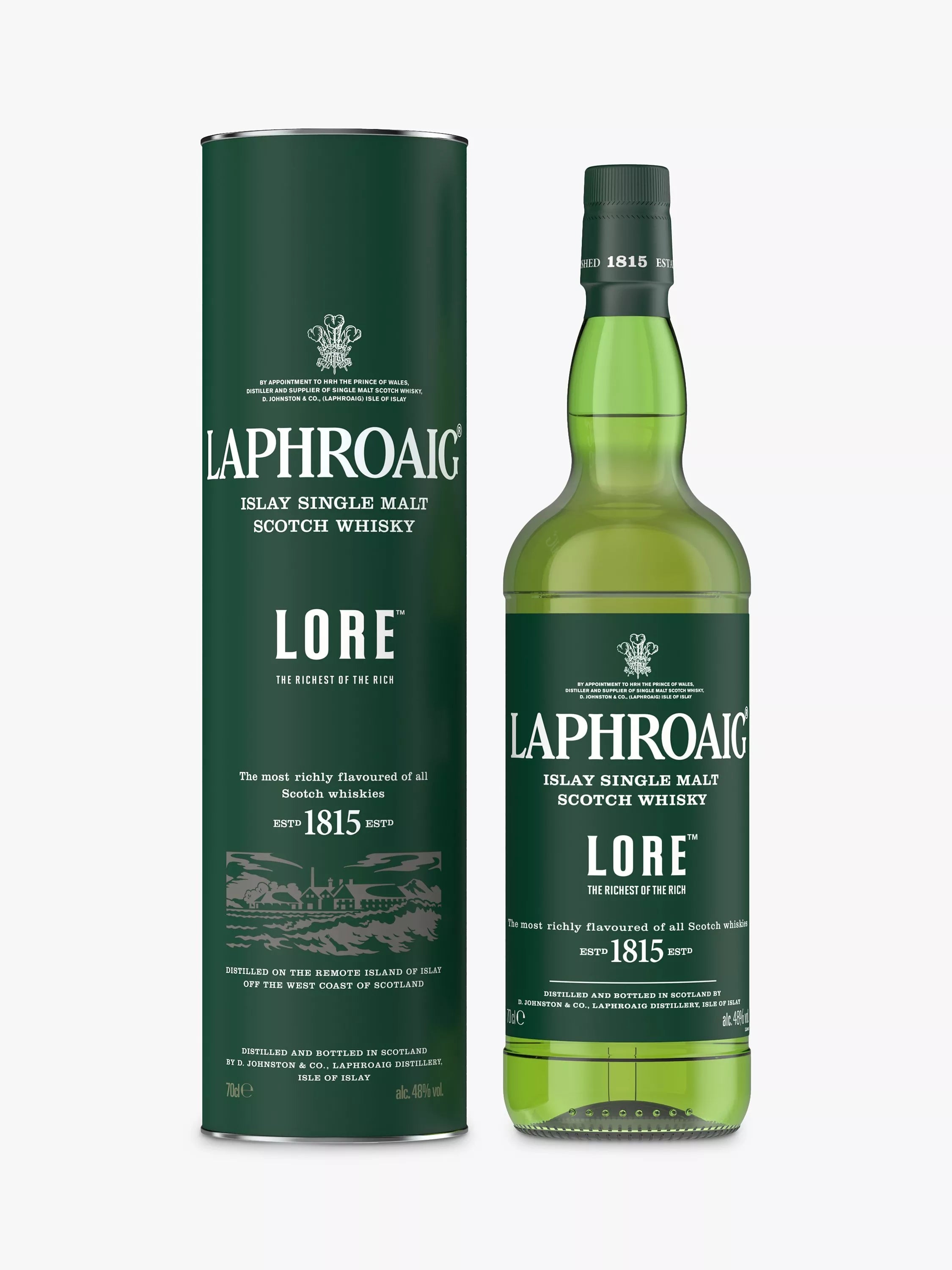 Laphroaig Lore est un assemblage complexe d'âges et de styles classiques. Il allie la puissance tourbée de Laphroaig à la douceur d'un whisky ayant subi un double vieillissement en fûts de chêne européen. Pour une profondeur et une complexité accrues, Laphroaig utilise le whisky le plus tourbé, vieilli dans d'anciens fûts de Laphroaig, ainsi que quelques fûts ayant contenu exclusivement du sherry. Le résultat est d'une complexité stupéfiante.