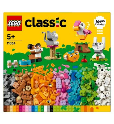 This LEGO Classic set 11034 allows young builders aged five and up to construct adorable animal figures. The box provides all the necessary colourful bricks to assemble a fox, cat, bird, rabbit, and hamster model. This set is designed to inspire open-ended building and support the development of fine motor skills.