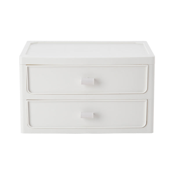 [Haute durabilité] : Fabriqué en plastique, il est facile d'entretien et très résistant. [Utilisation sûre] : Ses lignes épurées et ses bords arrondis préviennent les blessures aux mains. [Gain de place] : Son format compact optimise l'espace sur votre bureau. [Base antidérapante] : Sa base antidérapante renforcée assure une excellente stabilité. Caractéristiques Dimensions totales : 26 cm (L) x 15,5 cm (P) x 18 cm (H) Matériau : Plastique Couleur : Blanc Forme : Rectangulaire Type de produit : Boîte de rangement Type de montage : Autoportant Nombre de tiroirs : 2 Poignée incluse : Oui Assemblage requis : Non Contenu de l'emballage : 1 x Boîte de rangement