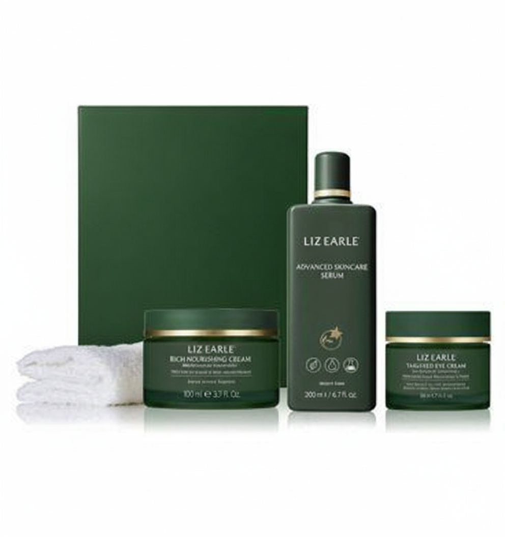 Reveal visibly plumper-looking skin with this Liz Earle 3-step Superskin routine. This set is supercharged using acacia tree extract, noted as a plant-based alternative to collagen for skin rejuvenation.