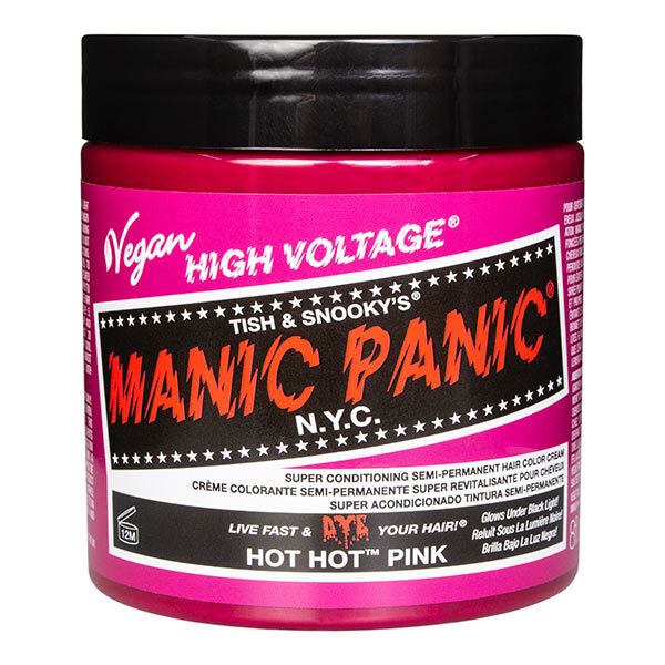 La pigmentation et l'éclat ne sont pas un problème avec la teinture Manic Panic Hot Hot Pink, surtout avec nos tout nouveaux pots de 227 g !