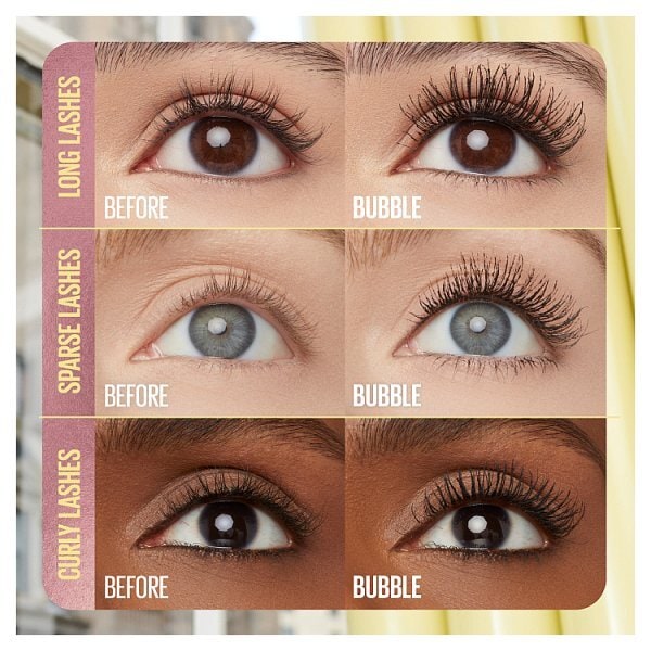The Maybelline Colossal Bubble mascara uses breakthrough technology to achieve inflated volume and sleek separation for your lashes. This long-lasting formula creates a distinctive bubble lash look and feel that lasts throughout wear.