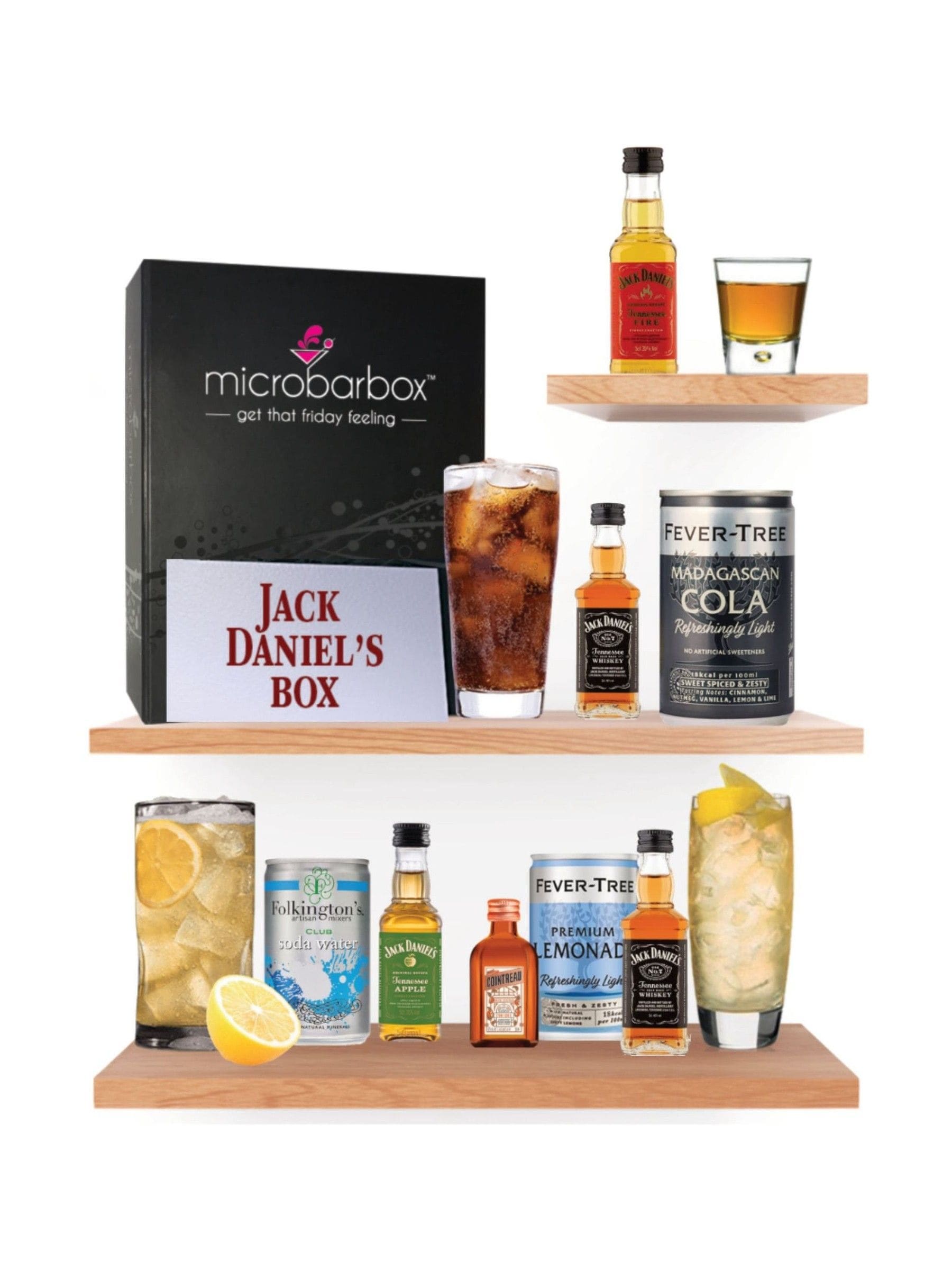 COCKTAILS DE CE COFFRET : Lynchburg Lemonade, Jack Honey & Ginger, Jack Fire, Jack Apple Fizz. CONTENU DU COFFRET : 50 ml de Jack Daniel's Old No. 7 Tennessee Whiskey (40 % vol.), 50 ml de Jack Daniel's Tennessee Apple (35 % vol.), 50 ml de Jack Daniel's Tennessee Fire (35 % vol.), 50 ml de Jack Daniel's Tennessee Honey (35 % vol.), 50 ml de Cointreau Triple Sec (40 % vol.), 150 ml de Folkington's Ginger Ale, 150 ml de Folkington's Sicilian Lemonade et 150 ml de Folkington's Soda Water. Verres non inclus. Ce coffret Jack Daniel's contient 9,4 unités d'alcool.