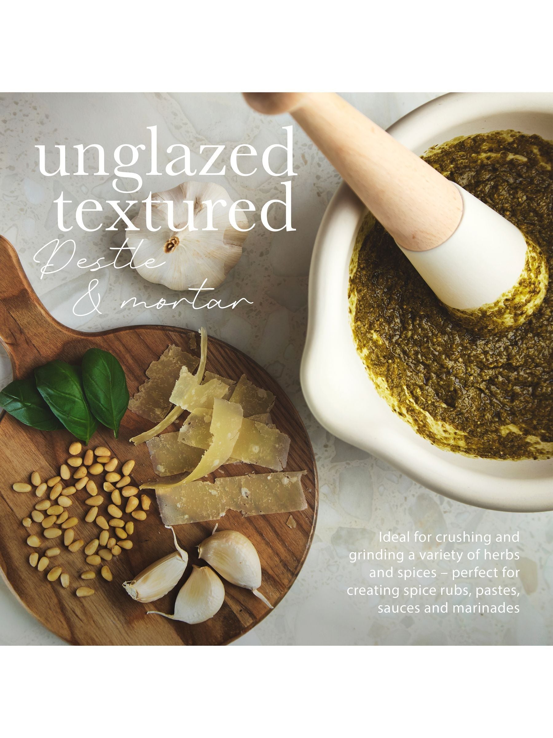 Mortier et pilon taille 4. Fabriqués en porcelaine non émaillée avec une finition abrasive idéale pour broyer épices et herbes. Finition en porcelaine non émaillée et manche en bois de hêtre pour un style classique. La porcelaine vitrifiée est résistante aux taches et ne retient ni odeurs, ni goûts, ni bactéries. Base dense pour un broyage facile. Nettoyage avec un détergent doux. Compatible four et congélateur.