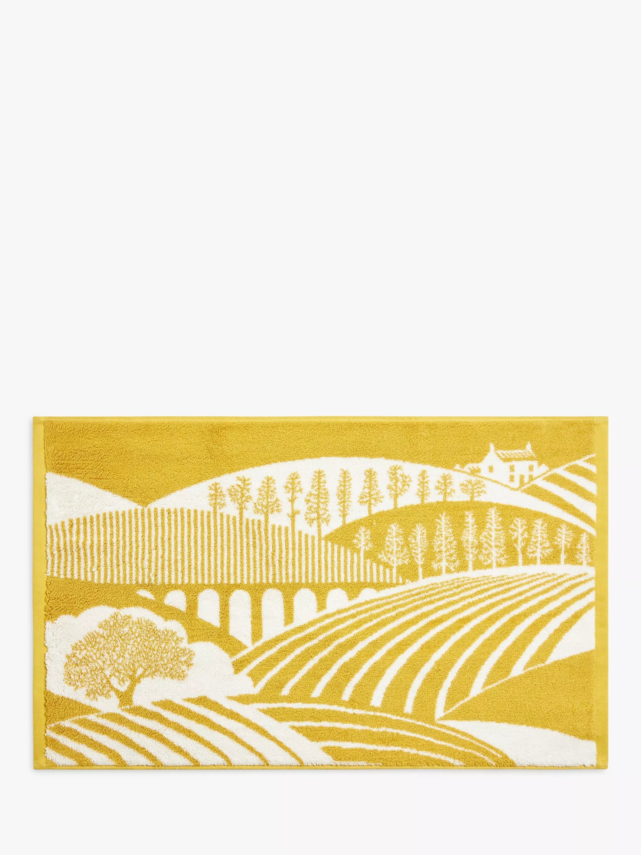 Un magnifique motif de collines ondulantes orne ce tapis de bain en pur coton.