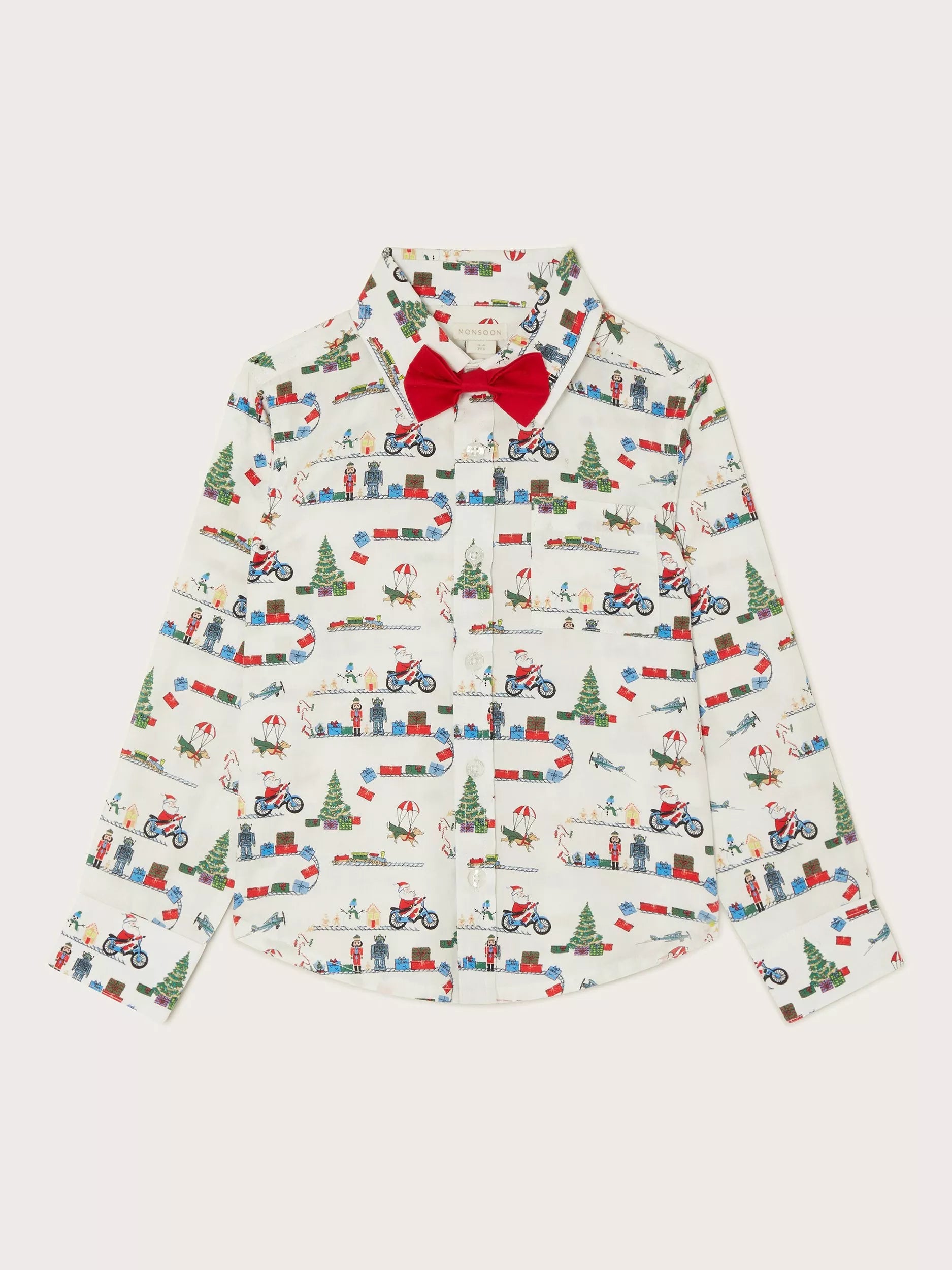 Avec cette chemise dans leur garde-robe, leur tenue pour le dîner de Noël est toute trouvée. Imprimée d'un motif festif, cette chemise en coton possède une fermeture boutonnée, un col classique et un élégant nœud papillon pour parfaire le tout.
