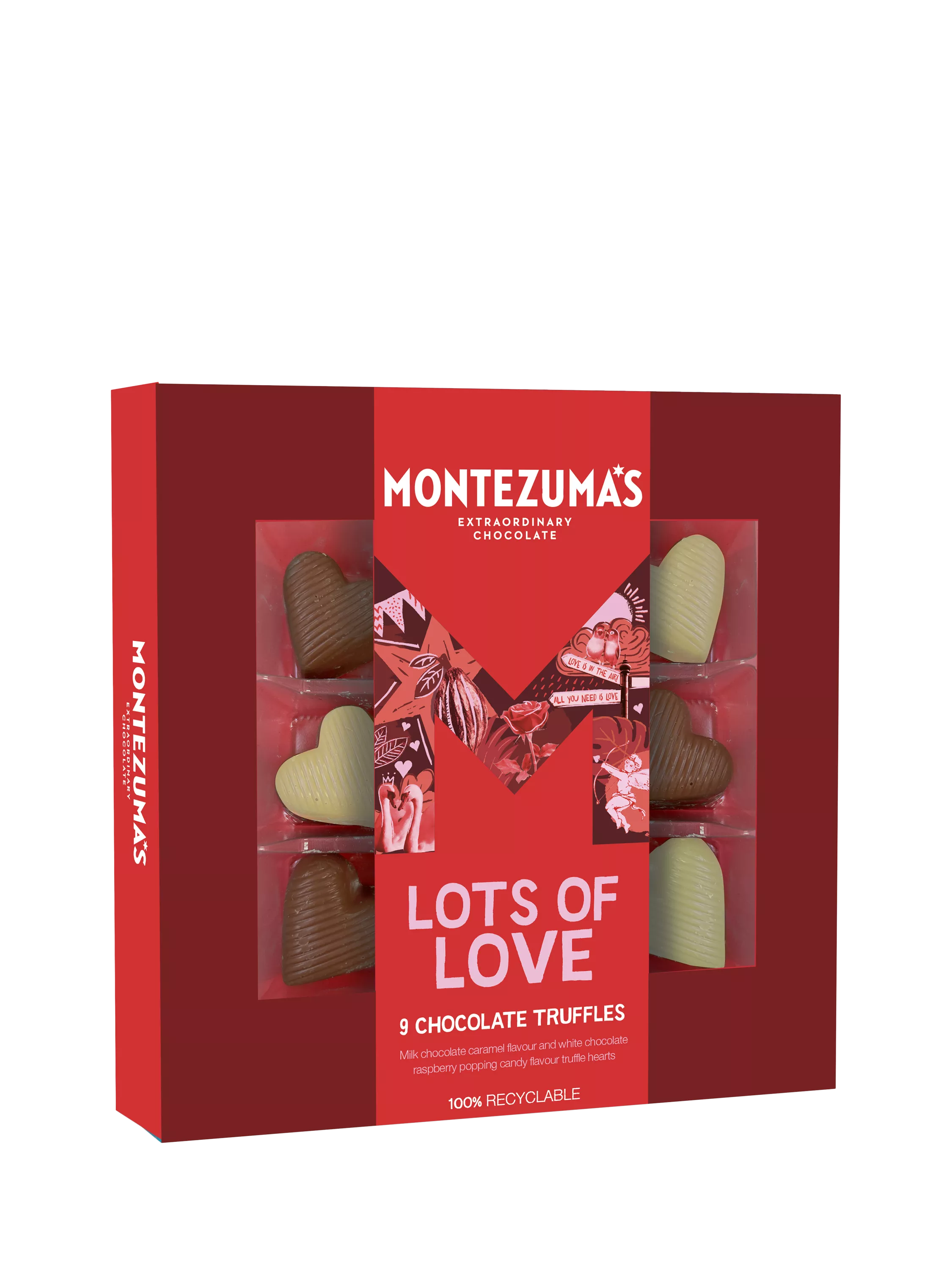 C'est peut-être un cliché, mais recevoir une boîte de chocolats fait toujours plaisir. Cette boîte « Plein d'amour » contient une sélection de truffes en forme de cœur au chocolat au lait et caramel, ainsi qu'au chocolat blanc et framboise pétillante.