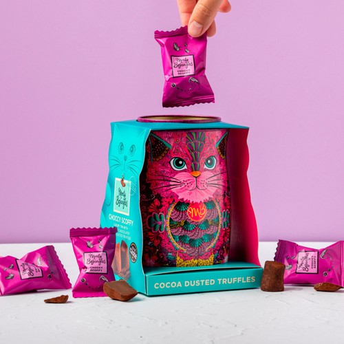 Discover a world of intensely chocolatey wonders. Our delicately soft luxury chocolate truffles are an indulgently scrummy experience full of delicious mouth-watering flavours. Deliciously moreish luxury dusted truffles in a collectable tin, designed as a beautiful & fantastical cat with its own personality and charm!