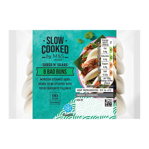 M&S 8 Bao Buns provide a quick and versatile base for many Asian-inspired meals. These moreish, pre-steamed buns are ready to be filled with your preferred ingredients. They offer excellent convenience for a fast lunch or starter preparation at home.
