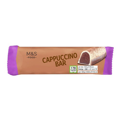 This M&S Cappuccino Bar offers a layered confectionery experience perfect for a sweet break. It combines distinct layers of white and dark chocolate surrounding a rich coffee mousse centre. This visually appealing bar is finished with a decorative layer of milk chocolate on top.