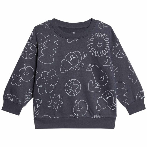 MS Doodle Print Sweatshirt 6-7 Years Charcoal