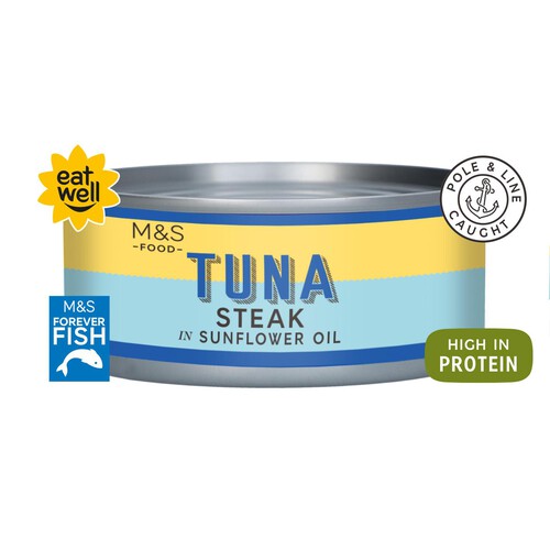 These flaky M&S Tuna Steaks are preserved in sunflower oil, offering a convenient and versatile protein source for many meals. They are ideal for flaking into salads or serving as a main dish component.