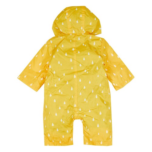Let children enjoy outdoor play, even in wet weather, with this adorable duck-themed puddle suit. It allows them to splash freely in puddles while keeping their underlying clothing dry and clean. The playful design encourages imaginative fun during rainy outings.