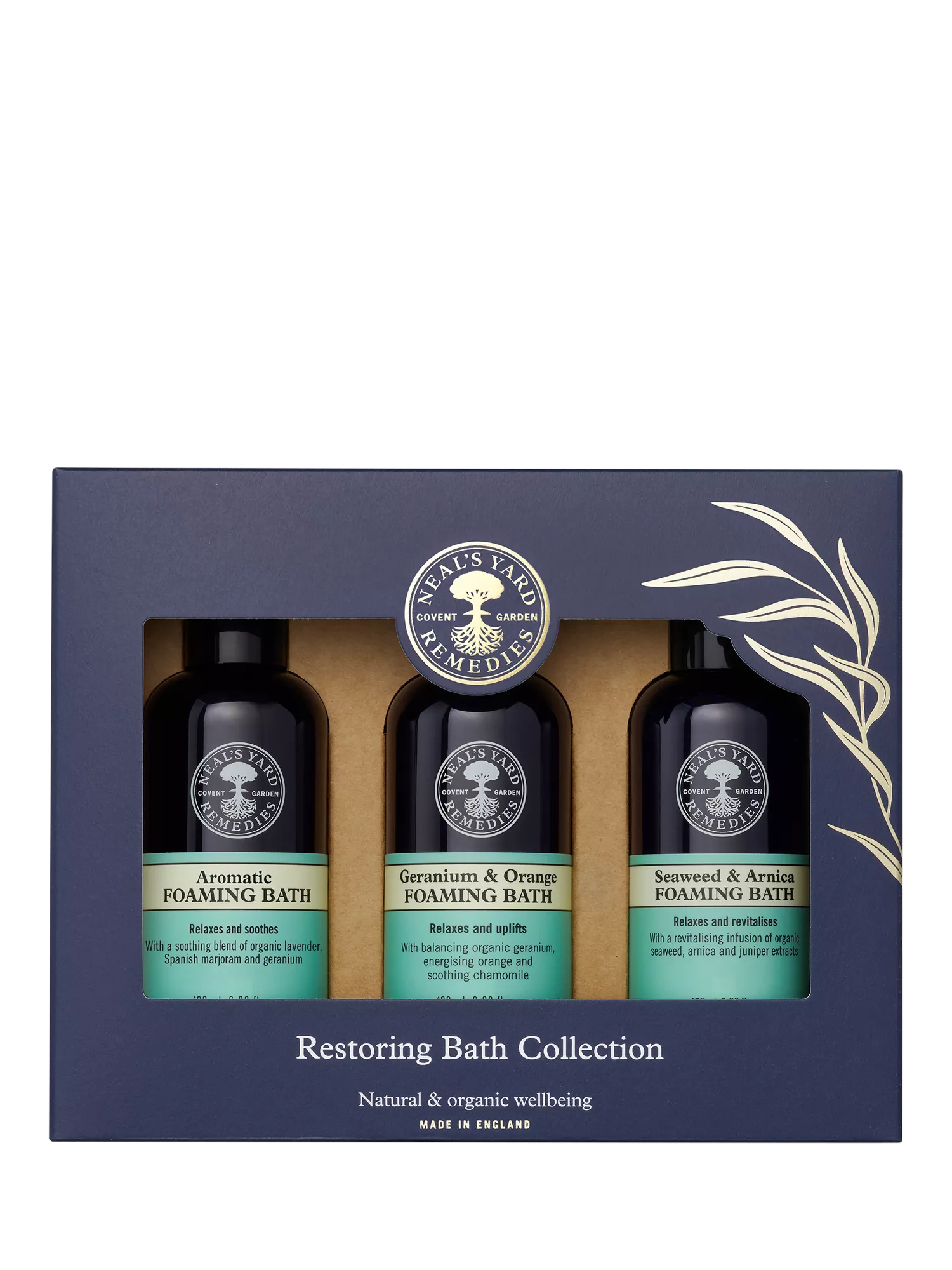 Offrez-vous un bain luxueux avec la collection Restoring Baths de Neal's Yard Remedies, un trio de bains moussants parfumés, parfaits pour se détendre et se ressourcer. Cette collection est idéale pour celles et ceux qui recherchent une parenthèse de calme et utilise des huiles essentielles pures pour un bain aromatique et thérapeutique.