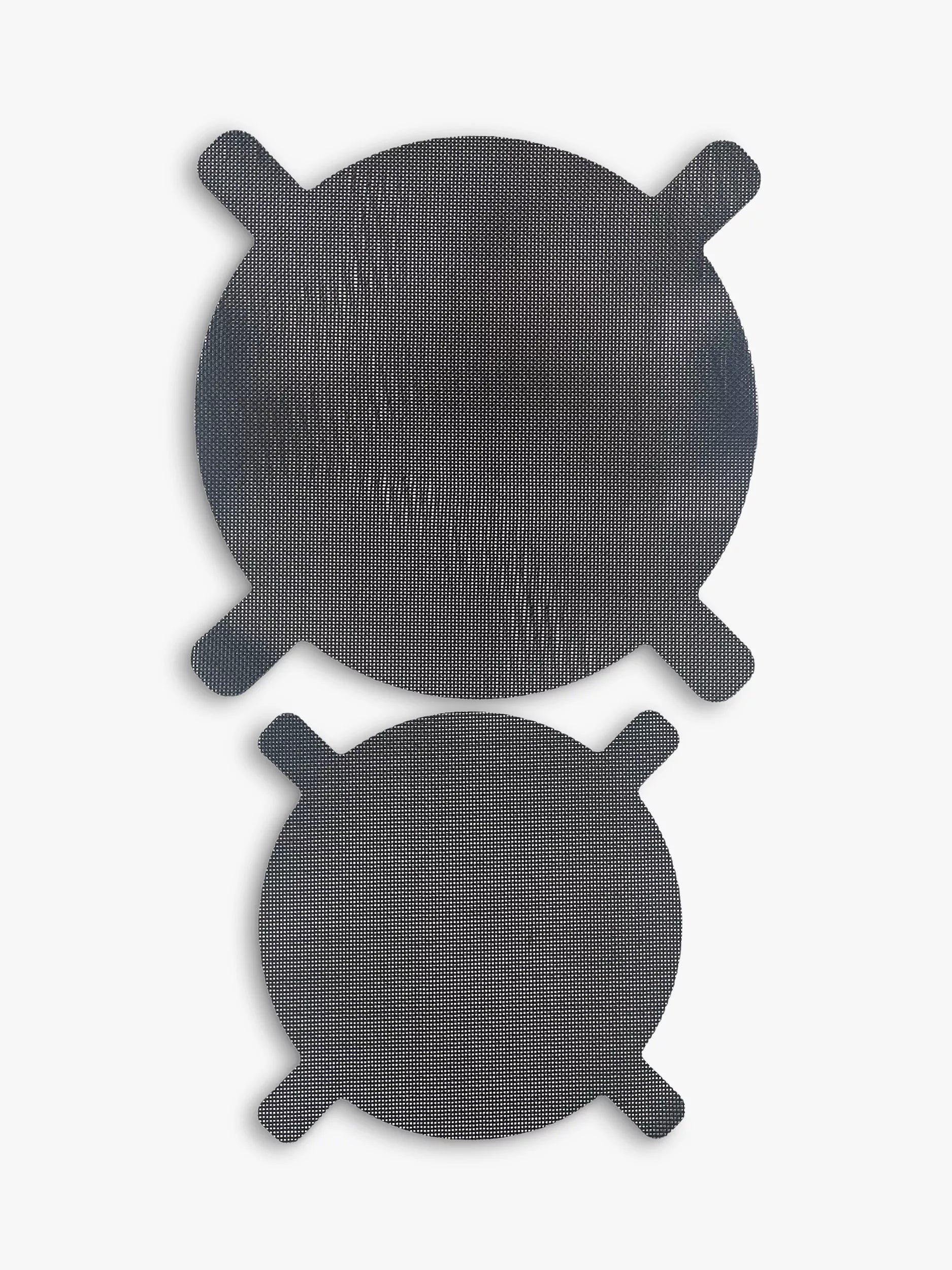 Faciles à ranger, les protections anti-éclaboussures prennent un minimum de place dans vos placards. Leur tissu souple se soulève facilement de la poêle pour retourner les aliments et surveiller la cuisson. Elles peuvent également servir de dessous de plat. Revêtement antiadhésif et inoxydable. Faciles à nettoyer et réutilisables, elles passent au lave-vaisselle et résistent à la chaleur jusqu'à 260 °C.