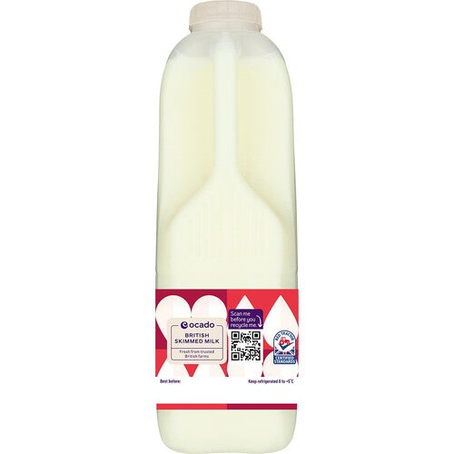 Ocado British Skimmed Milk is sourced exclusively from British farms dedicated to long-term, sustainable farming relationships. This pasteurised liquid offers a delicious, low-fat option for your daily needs. It is perfect for use over breakfast cereals, in baking, or stirring into your customary cup of tea or coffee.