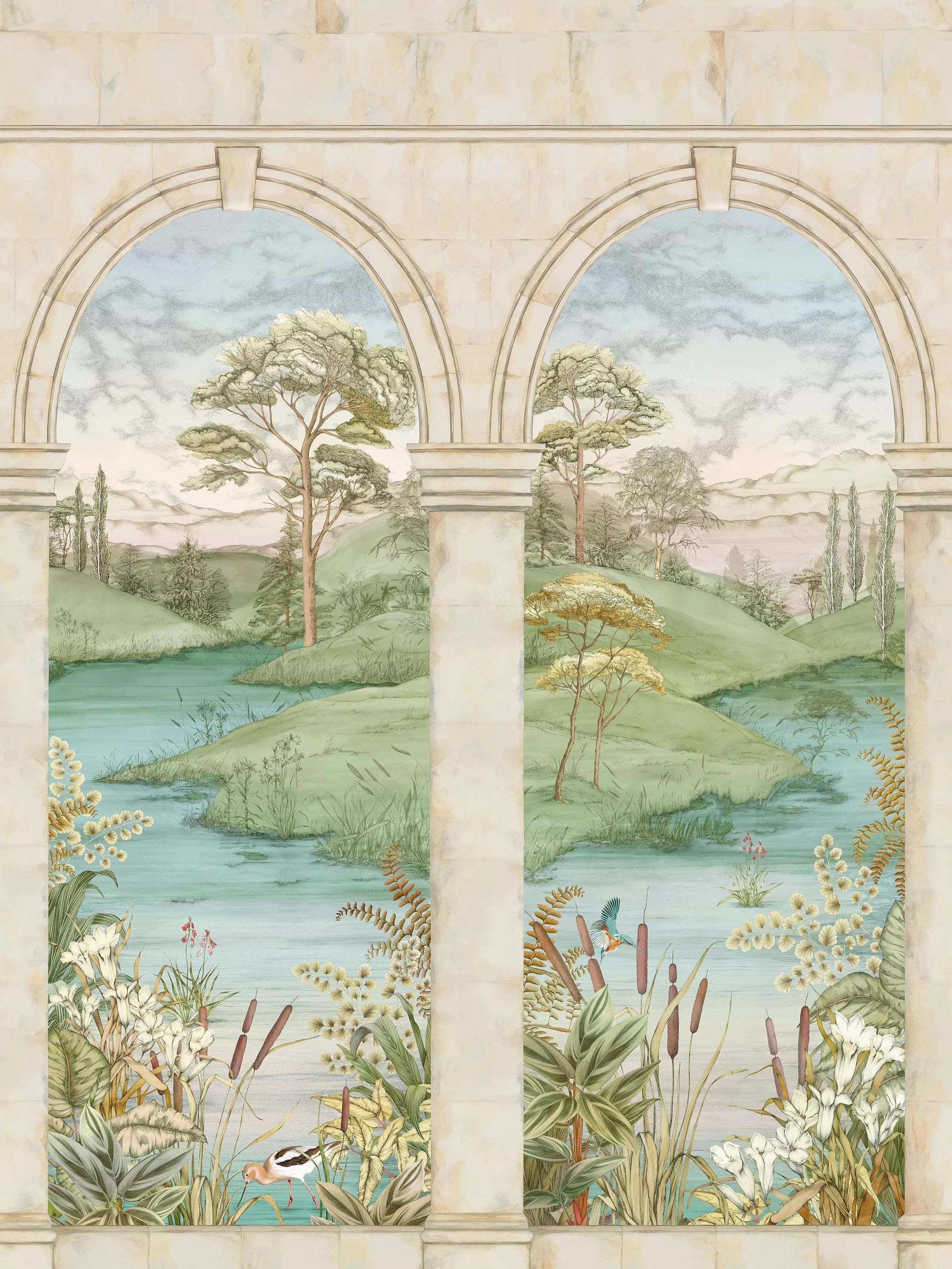 - Un design captivant : il représente un paysage lacustre serein vu à travers une colonnade de pierre.