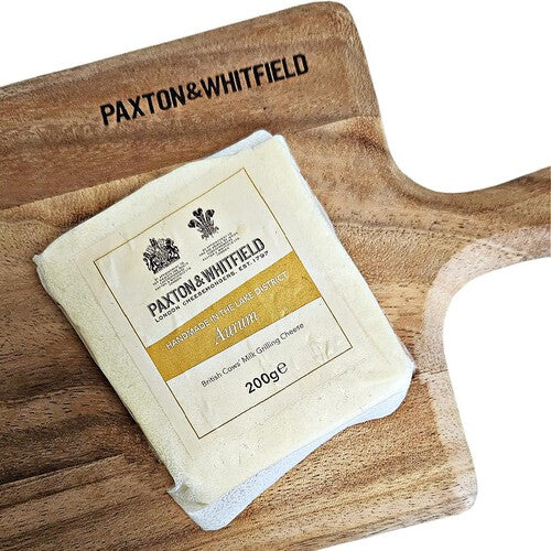 Paxton & Whitfield Aurum is a unique British cheese handcrafted in Cumbria. This distinctive grilling cheese uses high-quality organic cow’s milk sourced from a neighbouring farm. It balances subtle briny notes with rich buttery flavours, ensuring it is not overly salty.