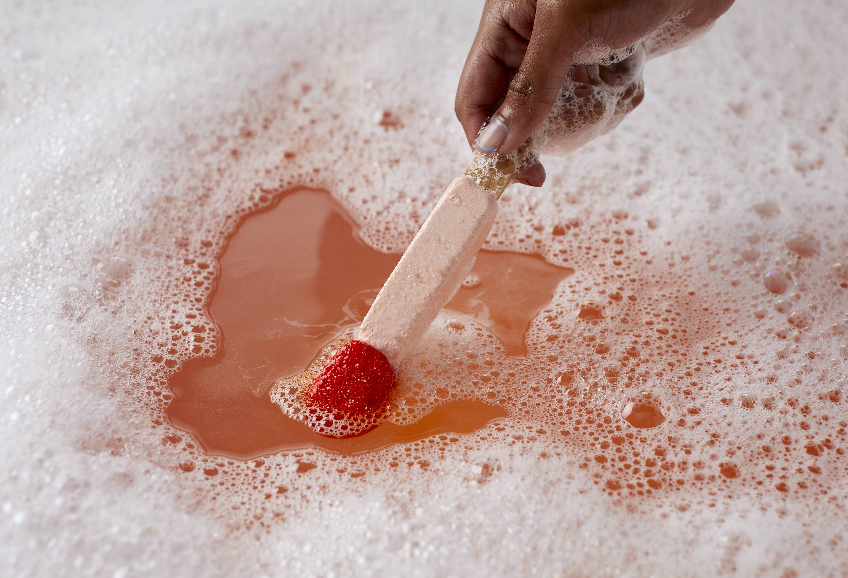 Pour une alliance parfaite, faites mousser dans de l'eau chaude ou sous l'eau courante pour obtenir une mousse florale et fruitée.