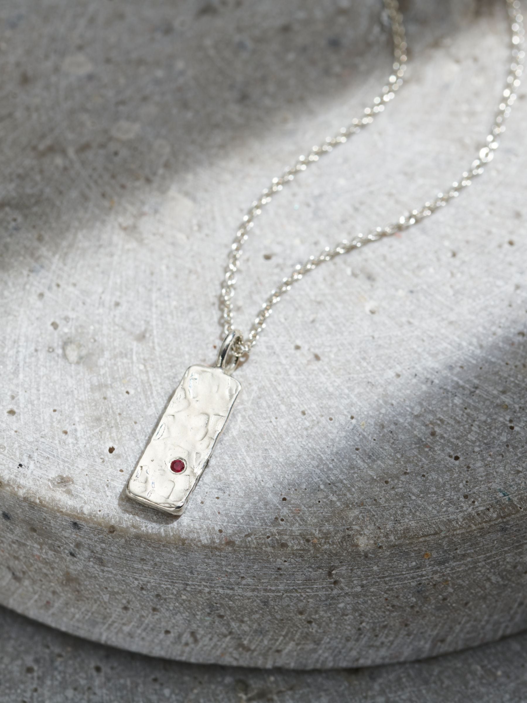 Ce magnifique collier pour homme en argent est fabriqué à la main dans notre atelier de Brighton. Il est composé d'une plaque en argent massif sertie de la pierre de naissance de votre choix et suspendue à une chaîne en argent massif.