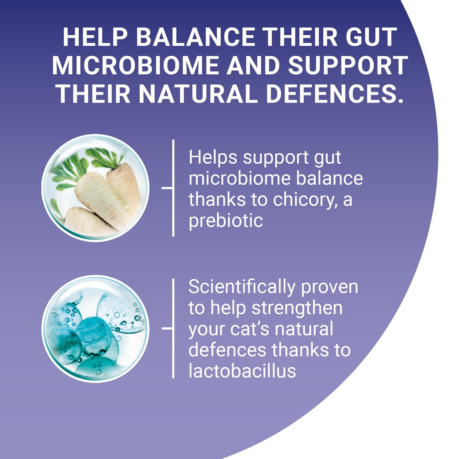 Scientifically proven to strengthen your cat’s natural defences thanks to lactobacillus - specific functional bacteria