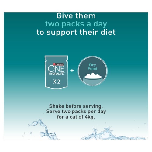 PURINA ONE Hydralife will also help support your cat's gut microbiome. Having a balanced gut microbiome helps ensure that your cat has good digestion and helps support a healthy immune system. The microbiome is an ecosystem containing trillions of microorganisms that live in the gut and are unique to each cat. The balance of microorganisms is important for a positive effect on your cat's digestive health, natural defences, and overall well-being.