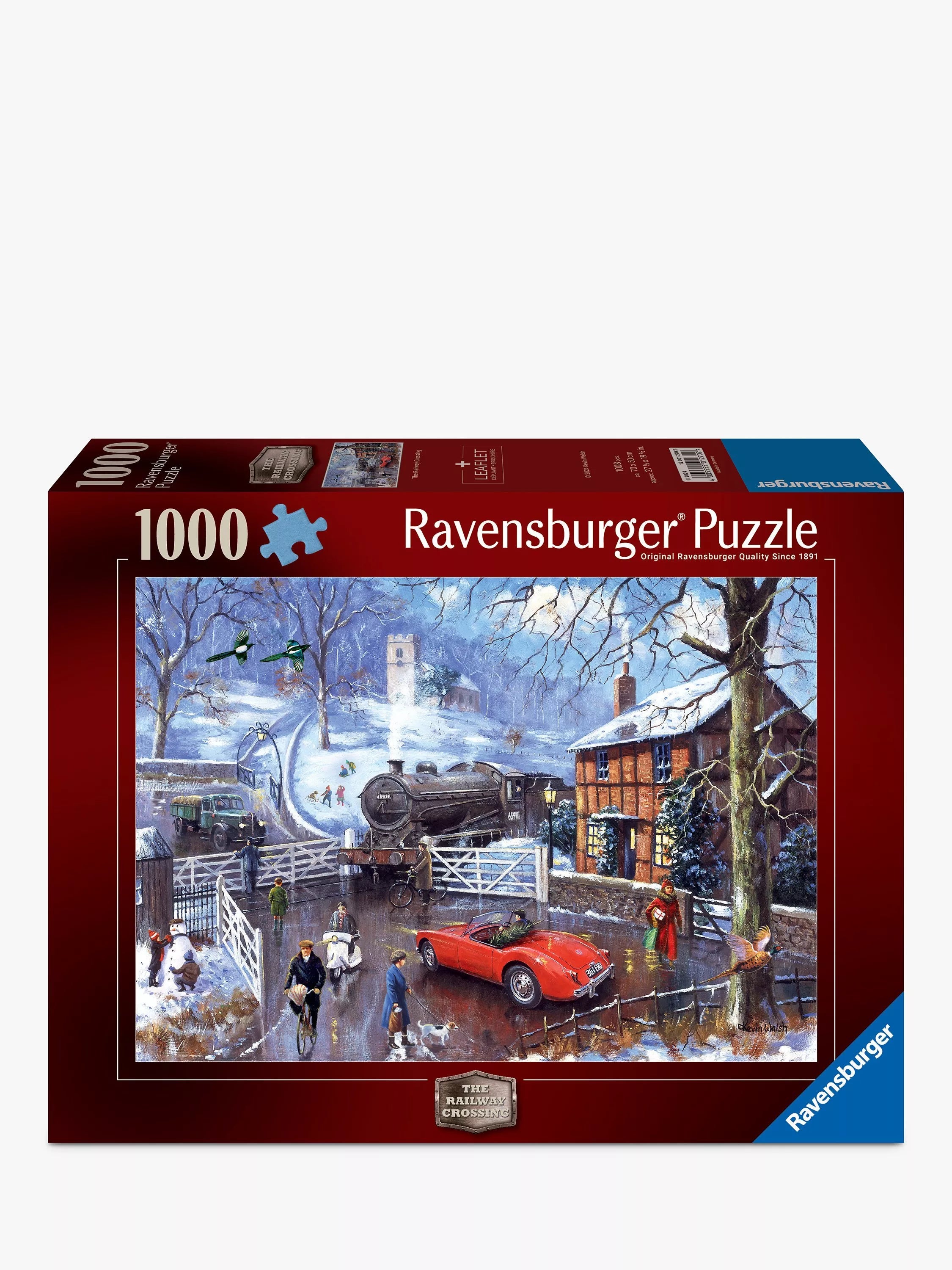 Au cœur de ce puzzle de 1000 pièces se trouve un village pittoresque, recouvert d'un manteau de neige immaculée, offrant un décor serein aux festivités hivernales. Un train à vapeur traverse le village, crachant des volutes de vapeur blanche dans l'air froid et vif. Il ajoute une touche de nostalgie à ce paysage hivernal. Aux portes du village, un camion chargé de marchandises attend patiemment leur ouverture. La scène est animée : des gens pédalent, promènent tranquillement leurs chiens et des enfants construisent avec enthousiasme un bonhomme de neige. Juste devant l'église, des enfants dévalent joyeusement une colline enneigée en luge. Et au milieu de ce village idyllique, un faisan prend son envol, symbole de la liberté et de la magie de l'hiver.