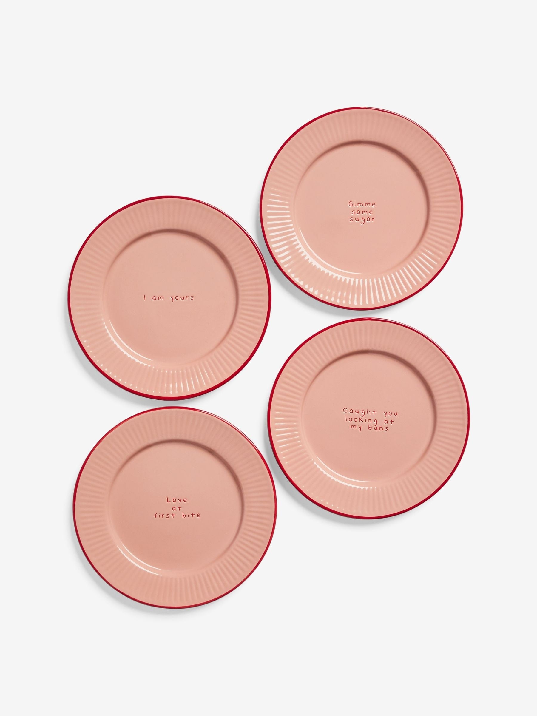 It's love at first bite with these Rockett St George First Bite Side Plates. Made from stoneware with contrast, handpainted rims and quirky, playful slogans to add a touch of fun to your tablescape.