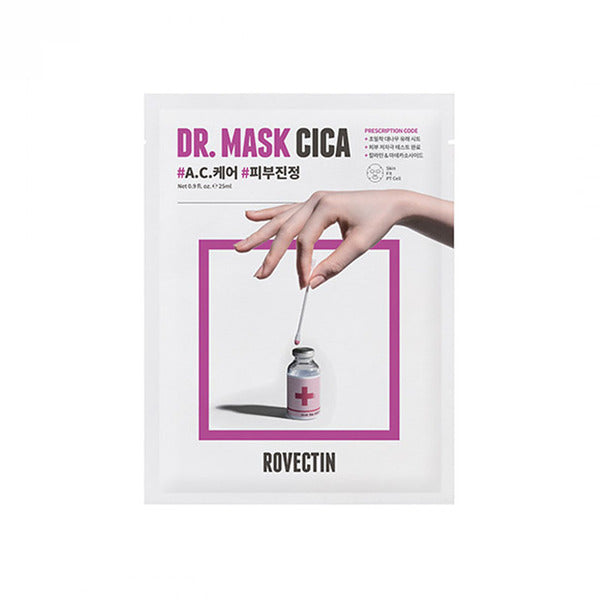 Informations produit : Le masque Dr Mask Cica de Rovectin Skin Essentials est un masque apaisant et anti-âge pour le visage, idéal pour les peaux sensibles. Enrichi en calamine et en madécassoside, il est parfait pour les peaux sensibles et abîmées. Il répare, hydrate et atténue les taches et les cicatrices. Non testé sur les animaux et sans ingrédients nocifs. Format : 25 ml.