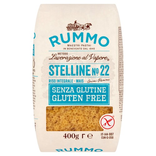 Rummo Gluten Free Stelline Pasta is crafted to deliver the texture and enjoyment of traditional pasta while remaining entirely gluten-free. This unique, small shape is ideal for incorporating into light soups, ensuring a satisfying meal experience. It utilises carefully selected, GMO-free grains for its composition.