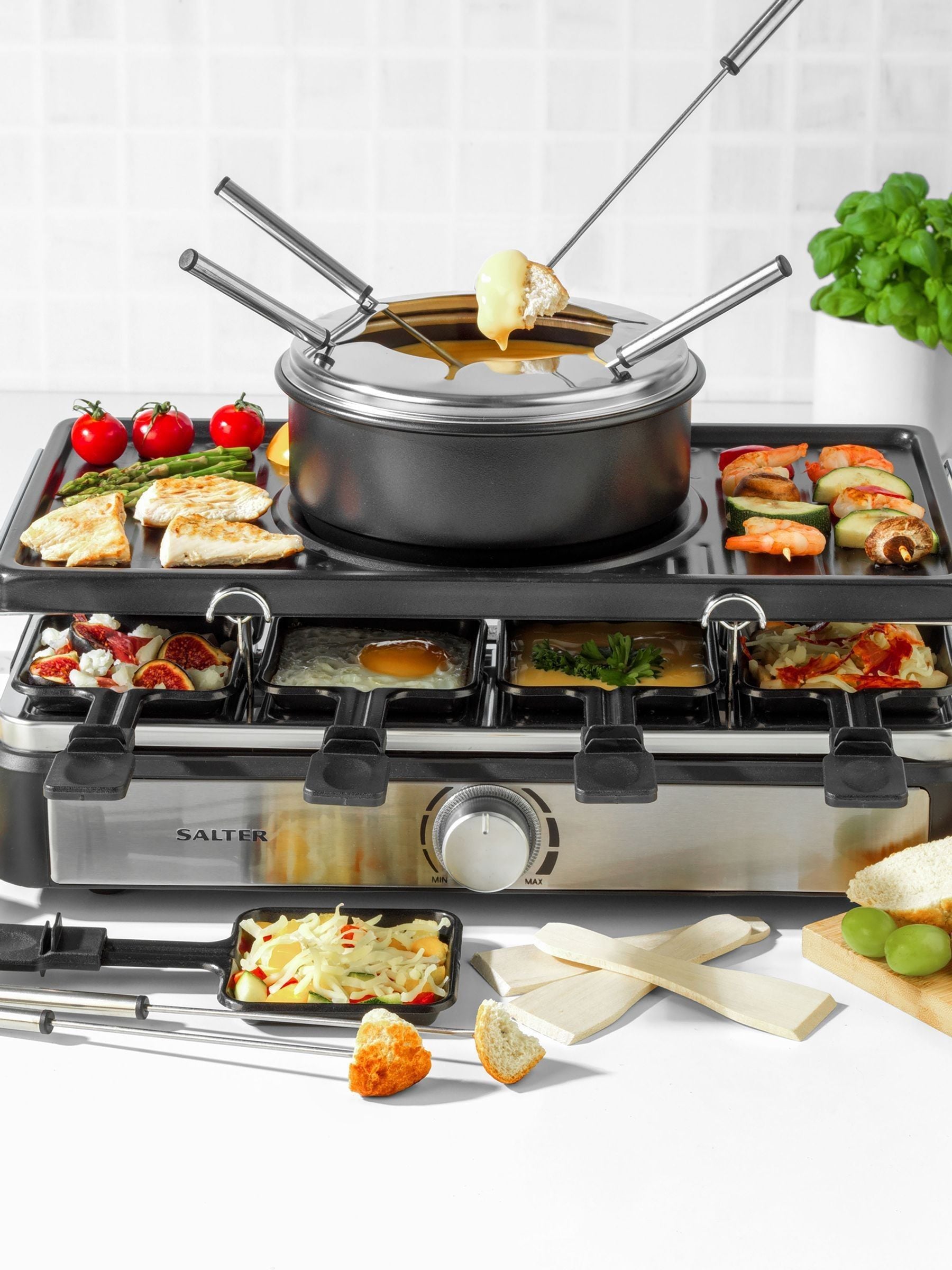 Salter Black Raclette Grill Fondue 2 in 1 Set Raclette