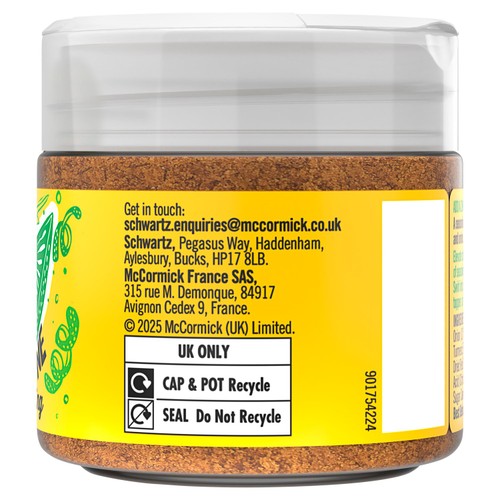 Schwartz All Rounder Zesty Seasoning is a versatile blend designed to enhance the flavour of various dishes. It combines key ingredients like lemon peel, paprika, and onion to deliver a bright, zingy taste to anything you prepare.