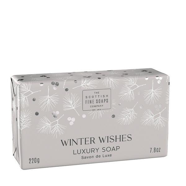 Ce savon « Vœux d'hiver » triple broyage de Scottish Fine Soaps laissera votre peau propre, douce et délicieusement parfumée aux riches notes d'épices de saison. Déjà emballé dans un papier orné d'un motif festif argenté et gris, c'est le cadeau idéal à glisser dans une chaussette de Noël ou une attention délicate à offrir à un être cher pendant les fêtes. Il prendra soin de votre peau tout en lui apportant une touche chaleureuse d'épices hivernales. Ingrédients : Palmate de sodium, Palmiste de sodium, Aqua (Eau), Glycérine, Parfum (Fragrance), Dioxyde de titane, Chlorure de sodium, EDTA tétrasodique, Gluconate de sodium, Étidronate tétrasodique, Benzoate de benzyle, Coumarine, Eugénol, Hexyl cinnamal, Linalol