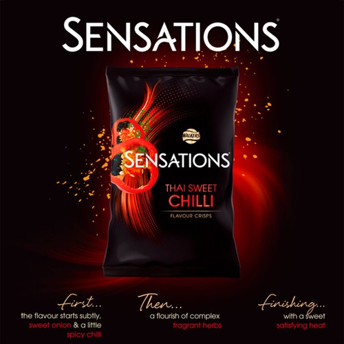 Discover the unique texture of Sensations crisps, prepared with premium potatoes and a thick-cut method for a superior crunch. These Thai sweet chilli crisps offer a balanced flavour profile, combining subtle sweetness with a mild, fragrant spice finish.