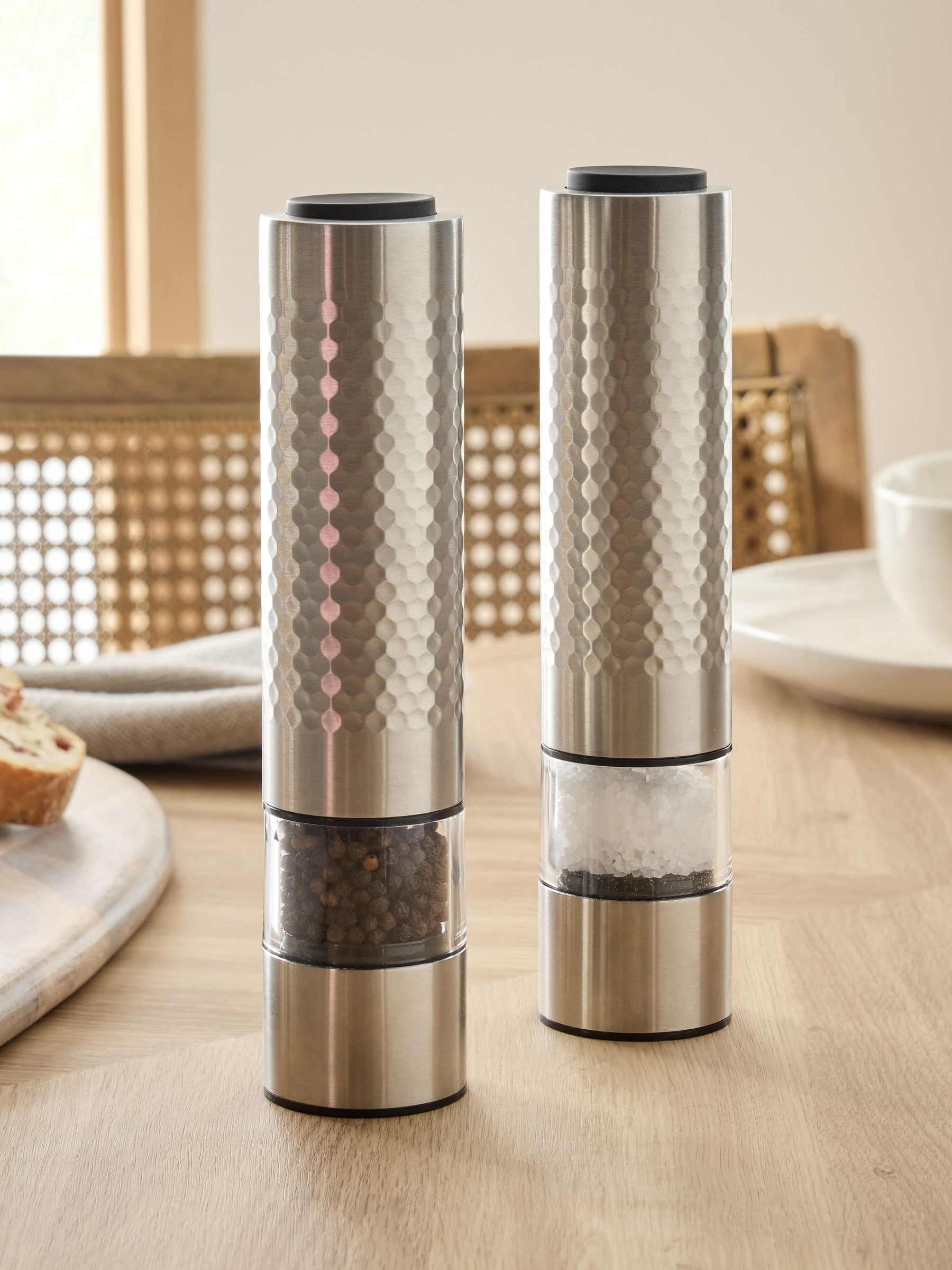 Set of 2 Silver Electric Steel Salt and Pepper Filled Grinder
