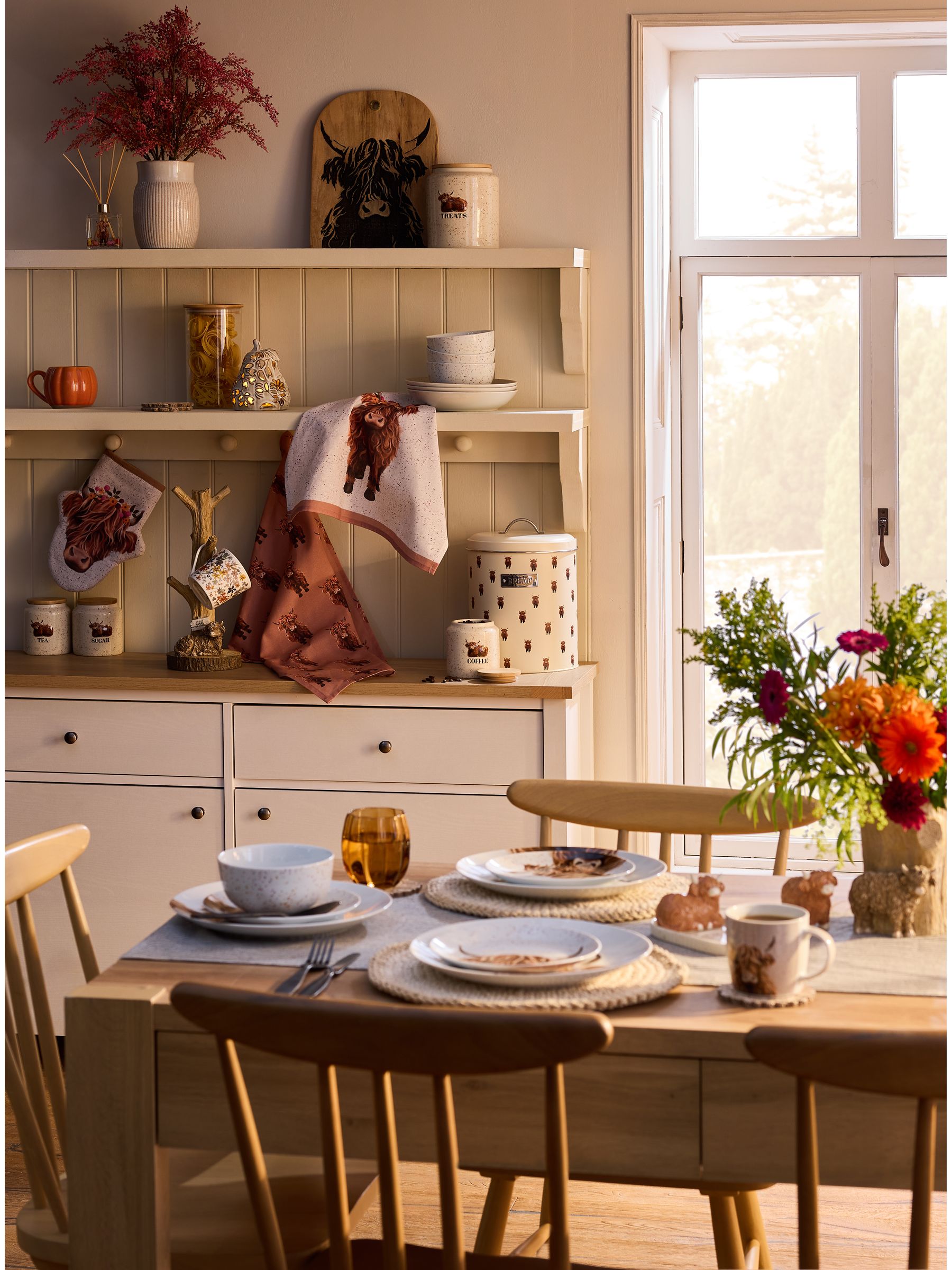 Ce lot de 4 bols à pâtes est fabriqué en porcelaine fine et présente un motif naturel représentant Hamish, la vache des Highlands, parfait pour les pâtes.