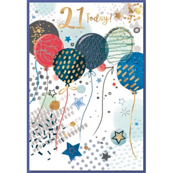 Product Information material card design balloons confetti number stars text traditional contents 6 envelope occasion 21st birthday