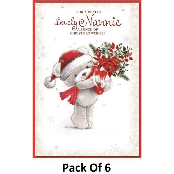 Material: Card. Design: Flowers, Teddy Bear, Text. Occasion: Christmas. Card Recipient: Grandmother.