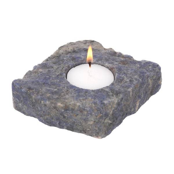 Integrate this striking sodalite candle holder into your ambient lighting scheme for subtle visual interest.